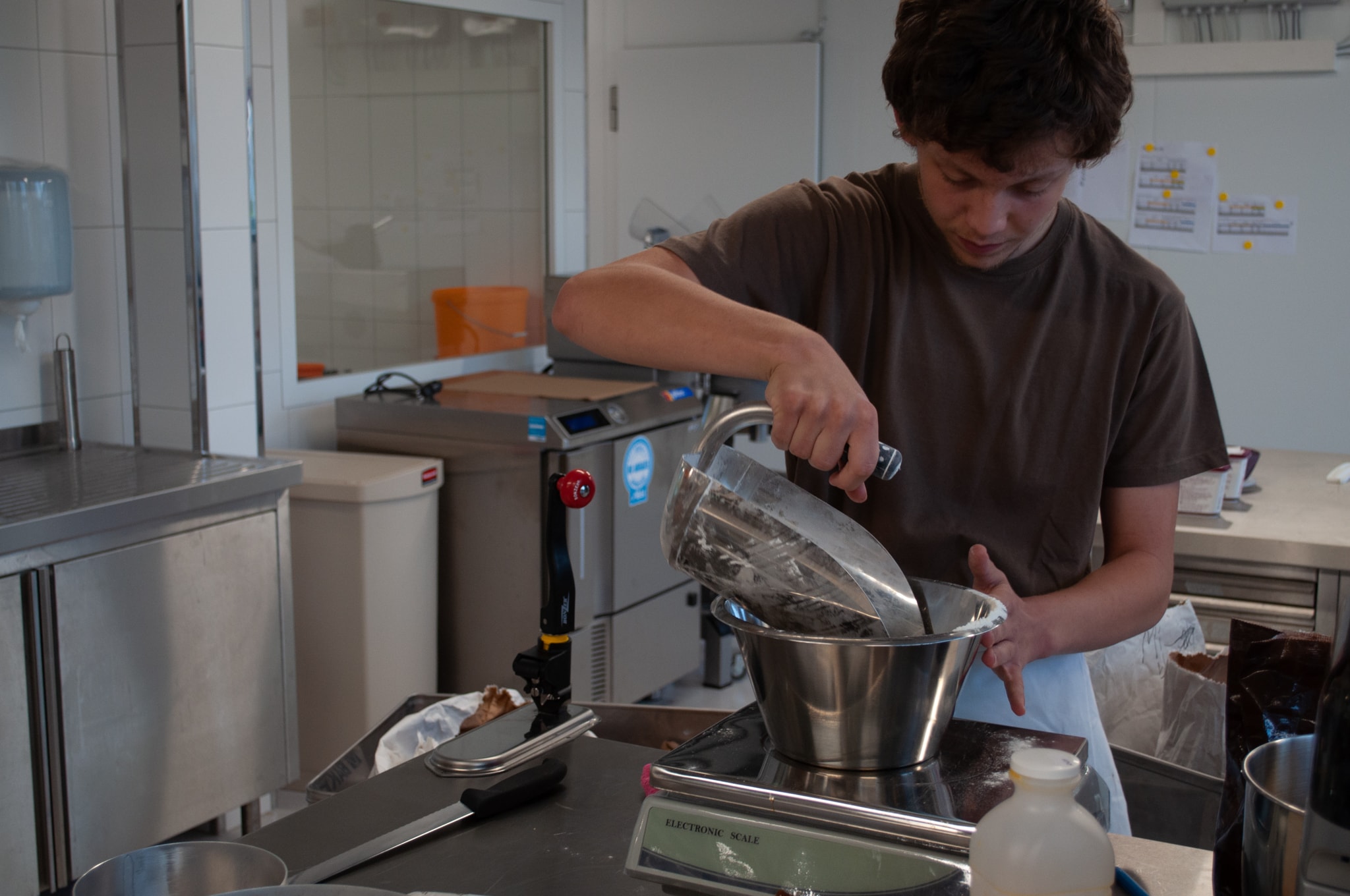 Pâte préparée par nos apprentis et fourrée avec un pâte de noisettes.